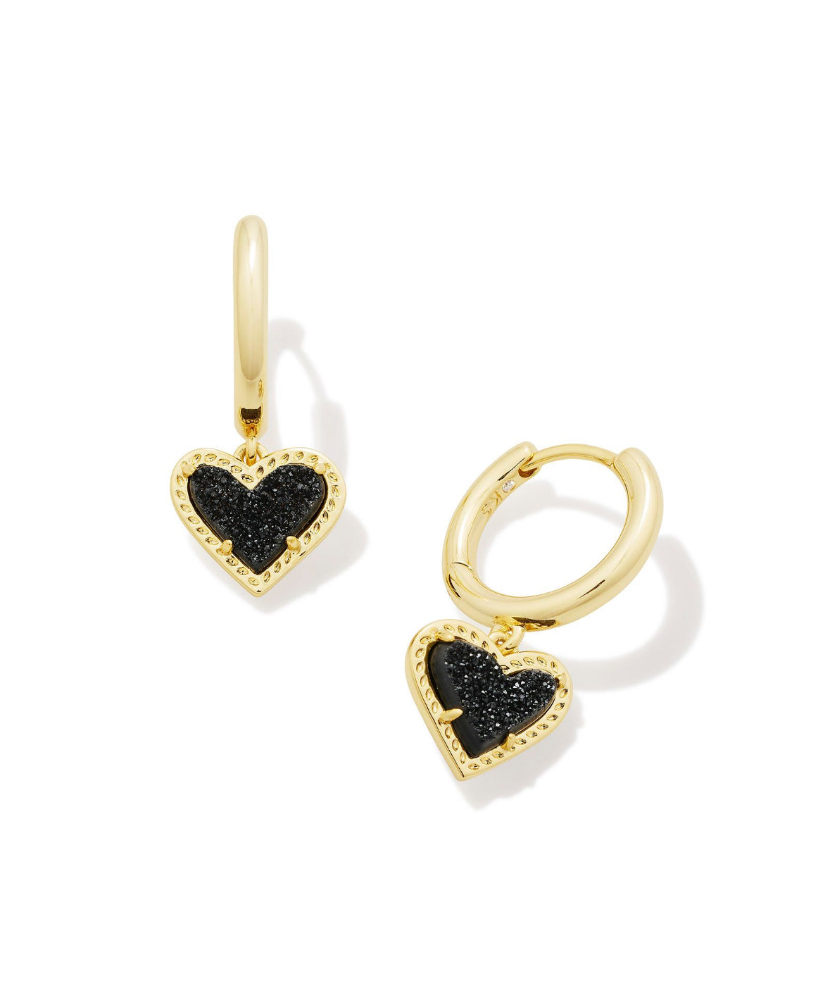 Ari Heart Huggie Earrings – Gold Black Drusy