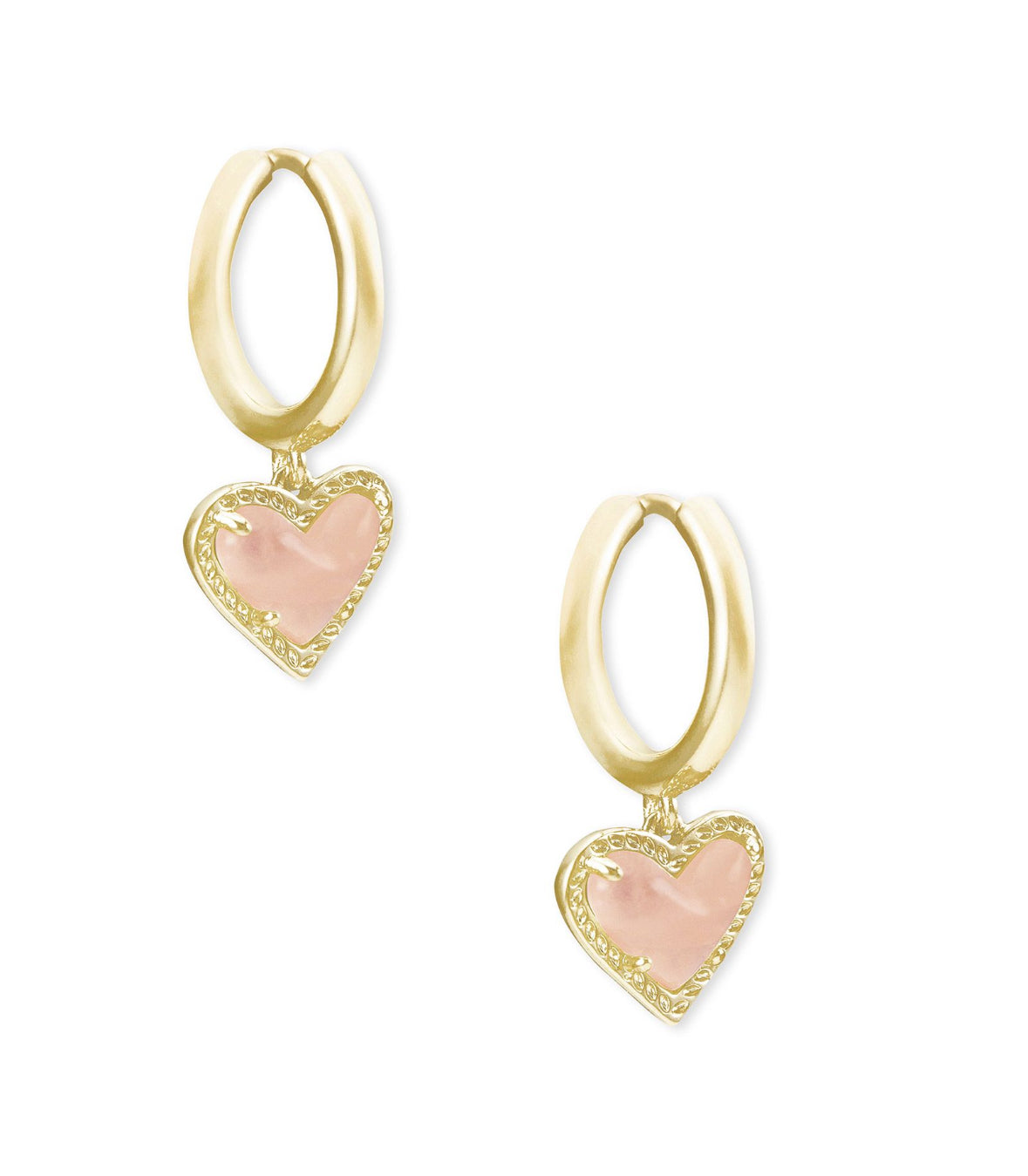 Ari Heart Huggie Earrings – Gold Rose Quartz