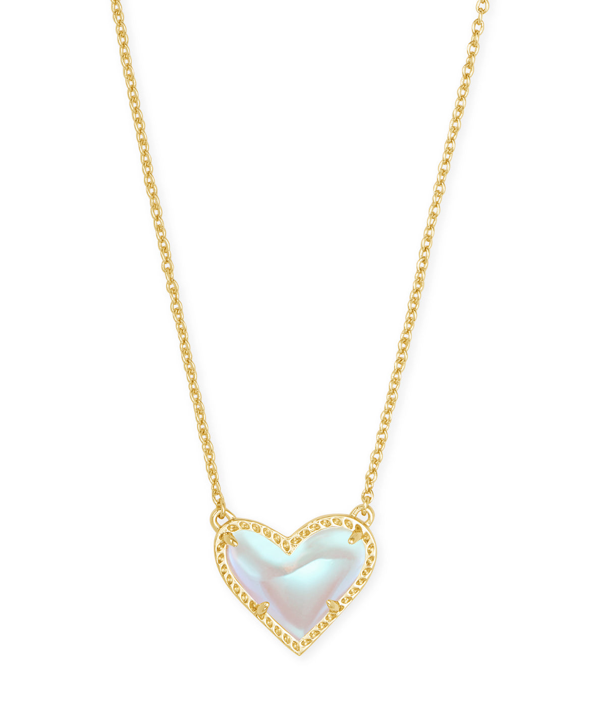 Ari Heart Short Pendant Necklace – Gold & Dichroic Glass