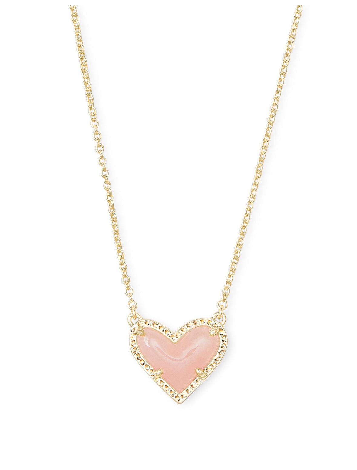 Ari Heart Short Pendant Necklace – Gold & Rose Quartz
