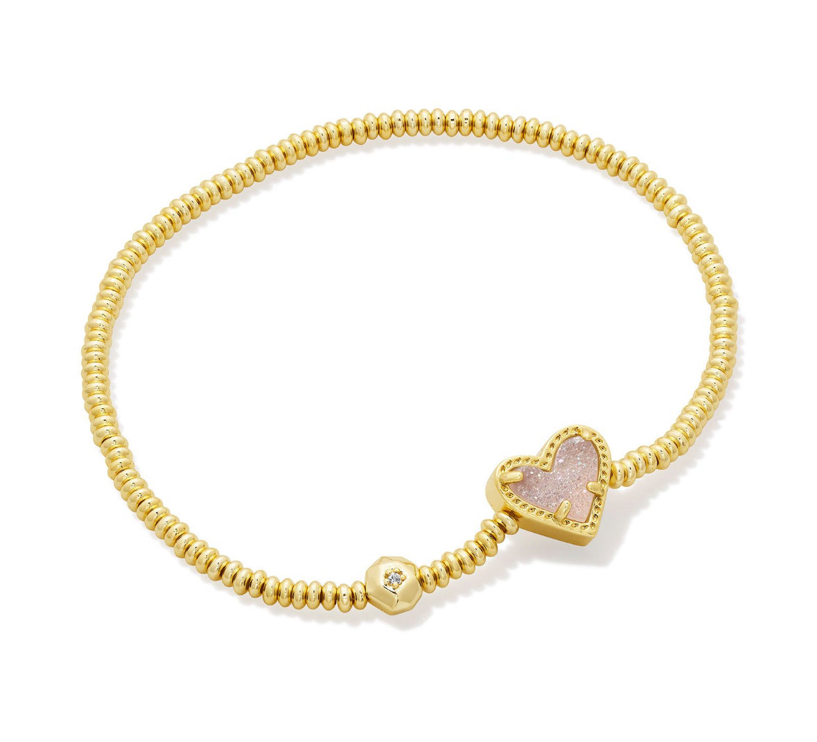 Kendra Scott Emilie Gold Stretch Bracelet – Pink Drusy Heart