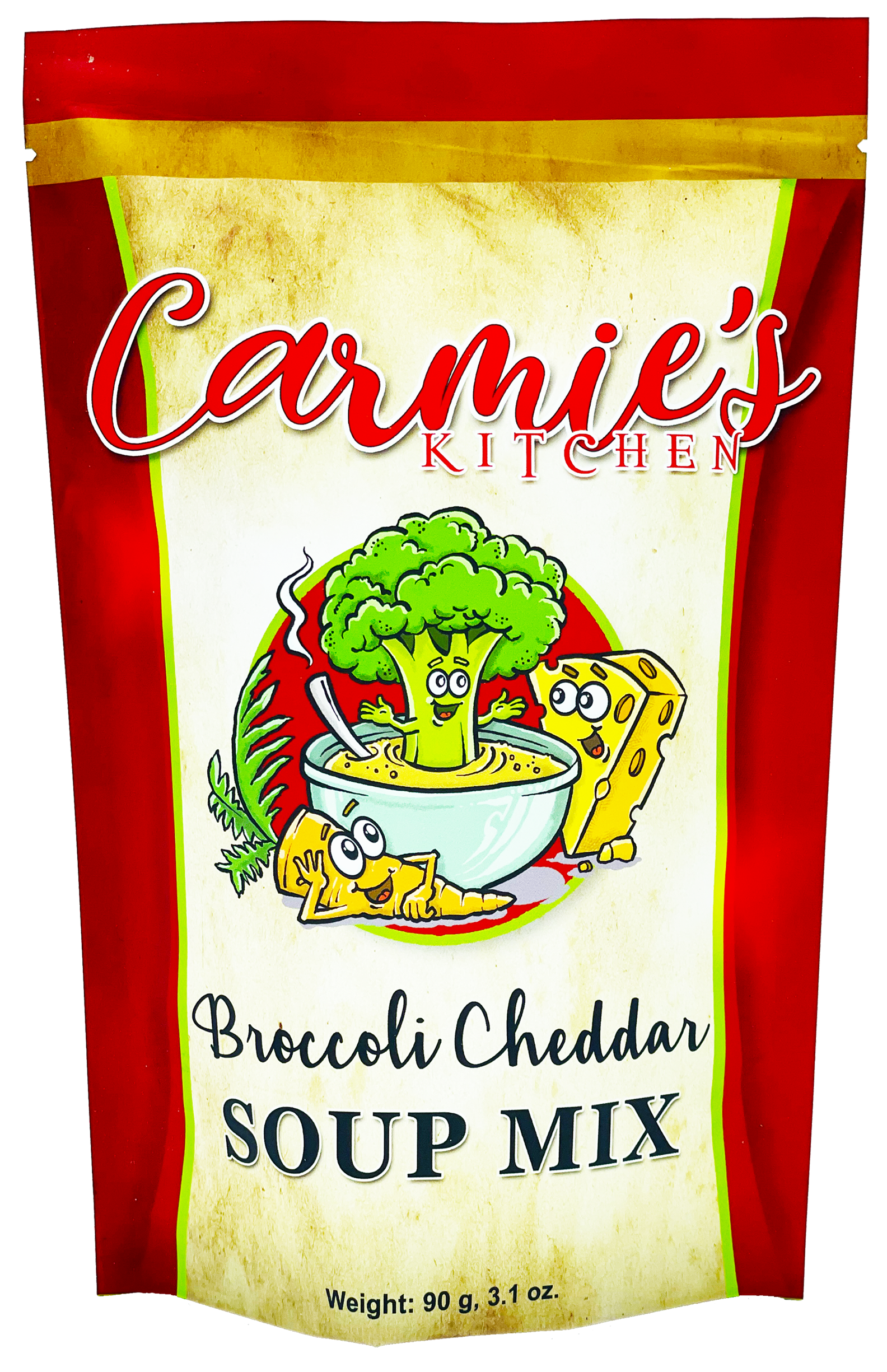 Creamy and cheesy, our Broccoli Cheddar soup mix is the ultimate in comfort food. By adding just a few simple ingredients, you can have a homemade delicious soup in minutes! Serve with hunks of bread and extra cheese on top-yum! Carmie's soup mixes make the perfect stocking stuffer, hostess gift, holiday gift, or holiday party addition!