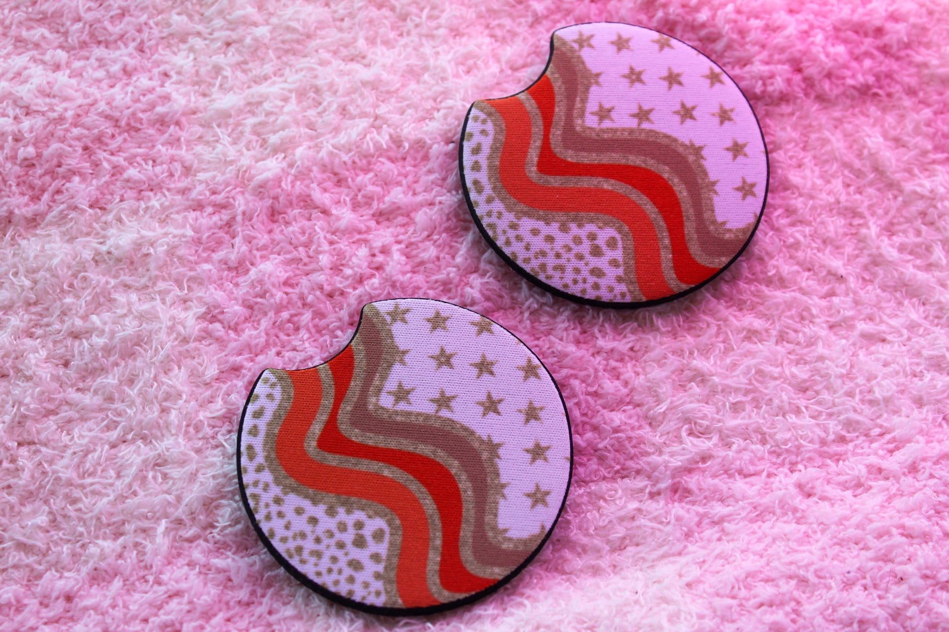 our car coasters are made out of thick neoprene and are easily a BEST seller. they make the perfect addition to your accessory items.
