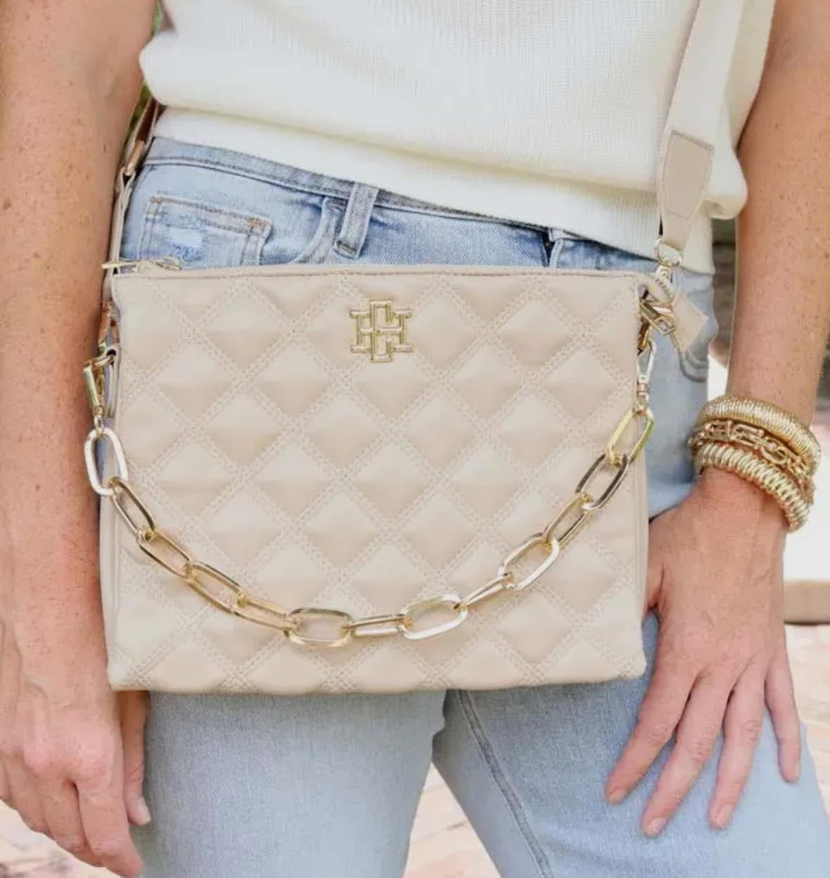 Caroline Hill Ariana Nude Quilted Crossbody