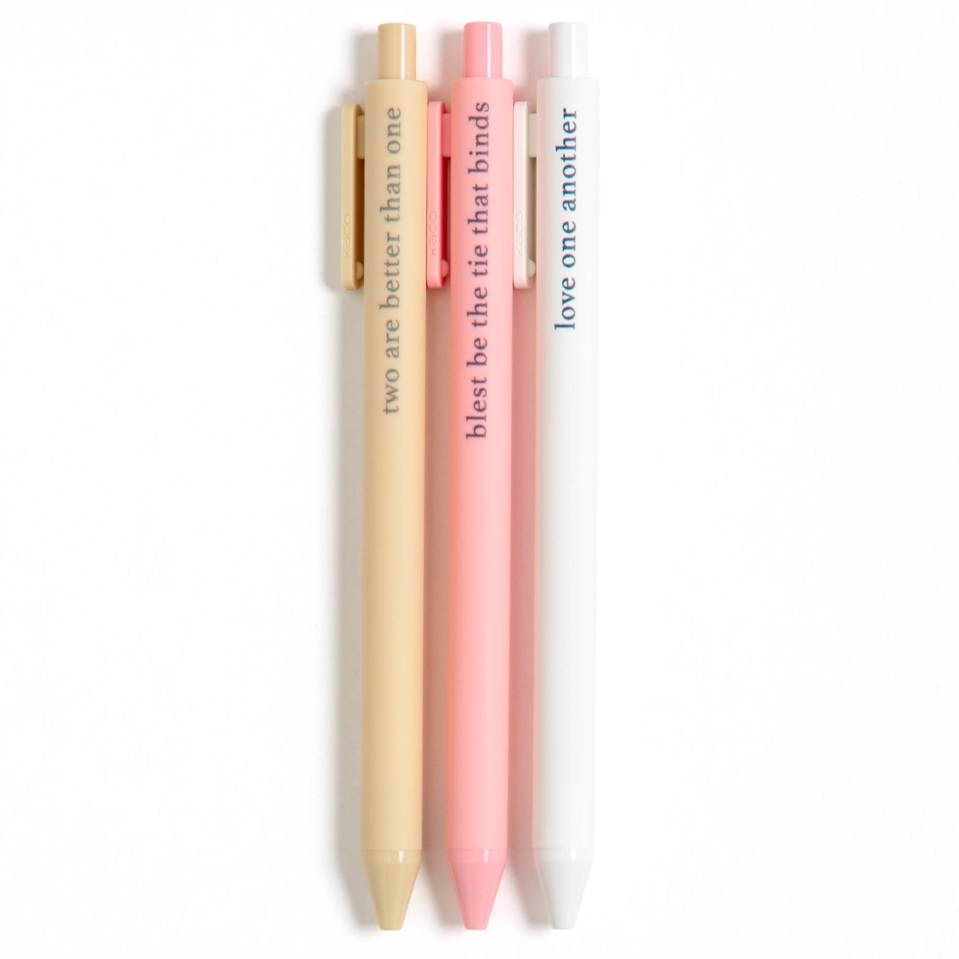 Celebrate the gift of friendship with our Friendship Pen Set! This charming collection of three ink pe features uplifting phrases from the Bible, beautifully capturing the joys of camaraderie through Ecclesiastes 4:9-12, Roma 12:5, and Colossia 3:14. Whether you’re taking notes, attending Bible study, sending heartfelt letters to long-distance friends, or journaling, our Friendship Pen Set is the perfect companion. Ideal for gifting on birthdays, Christmas, Easter, or just because, this set is a wonderful way to i pire and nurture fellowship in the Lord.