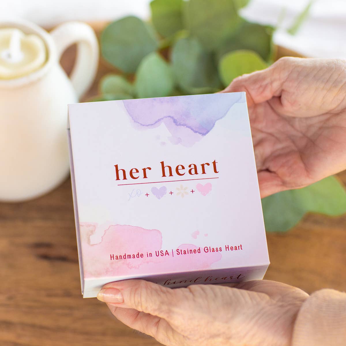 Her Heart for Mom USA Handmade Stained Glass Pink Heart 7901