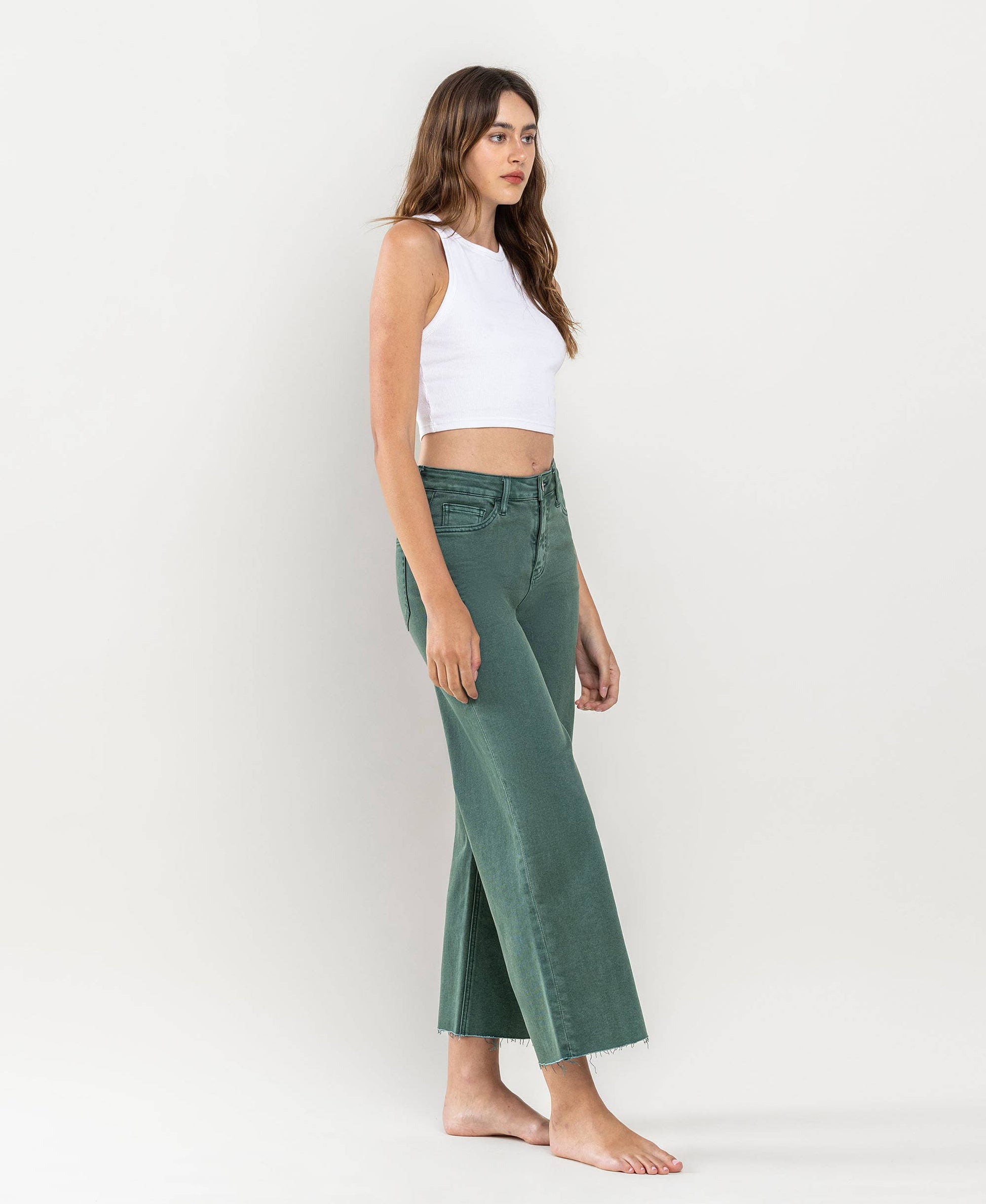 HIGH RISE CROP WIDE LEG JEANS MALLARD GREEN