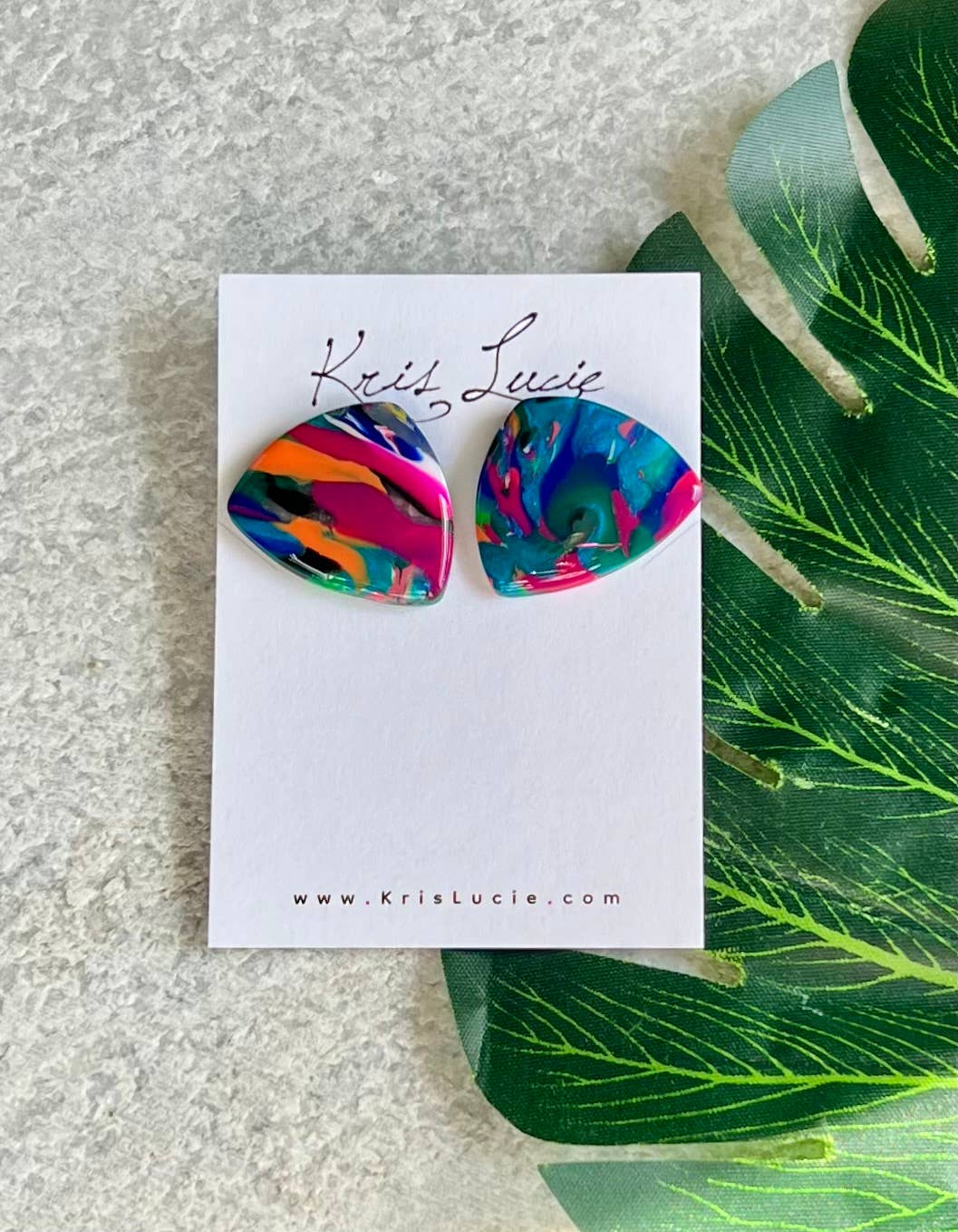 Material- Polymer Clay, Gold Plated Studs & Rings, UV Resin Top Coated
