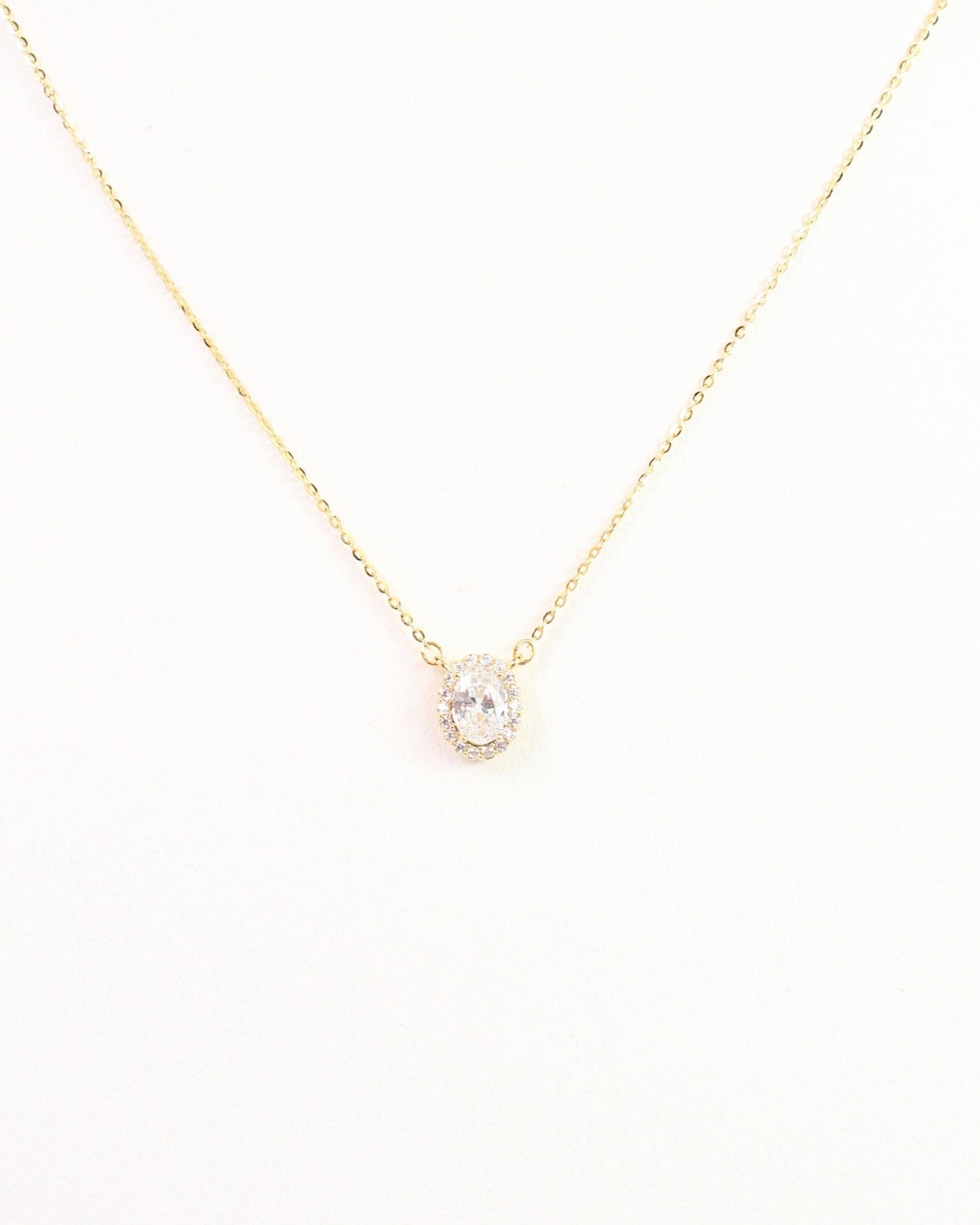 Add a touch of sparkle to your day with the Knightbridge Crystal Necklace Gold. Featuring a shimmering oval CZ pendant suspended from a delicate gold-toned brass chain, this playful piece effortlessly brightens any outfit. Perfect for adding a little glam without going over the top!