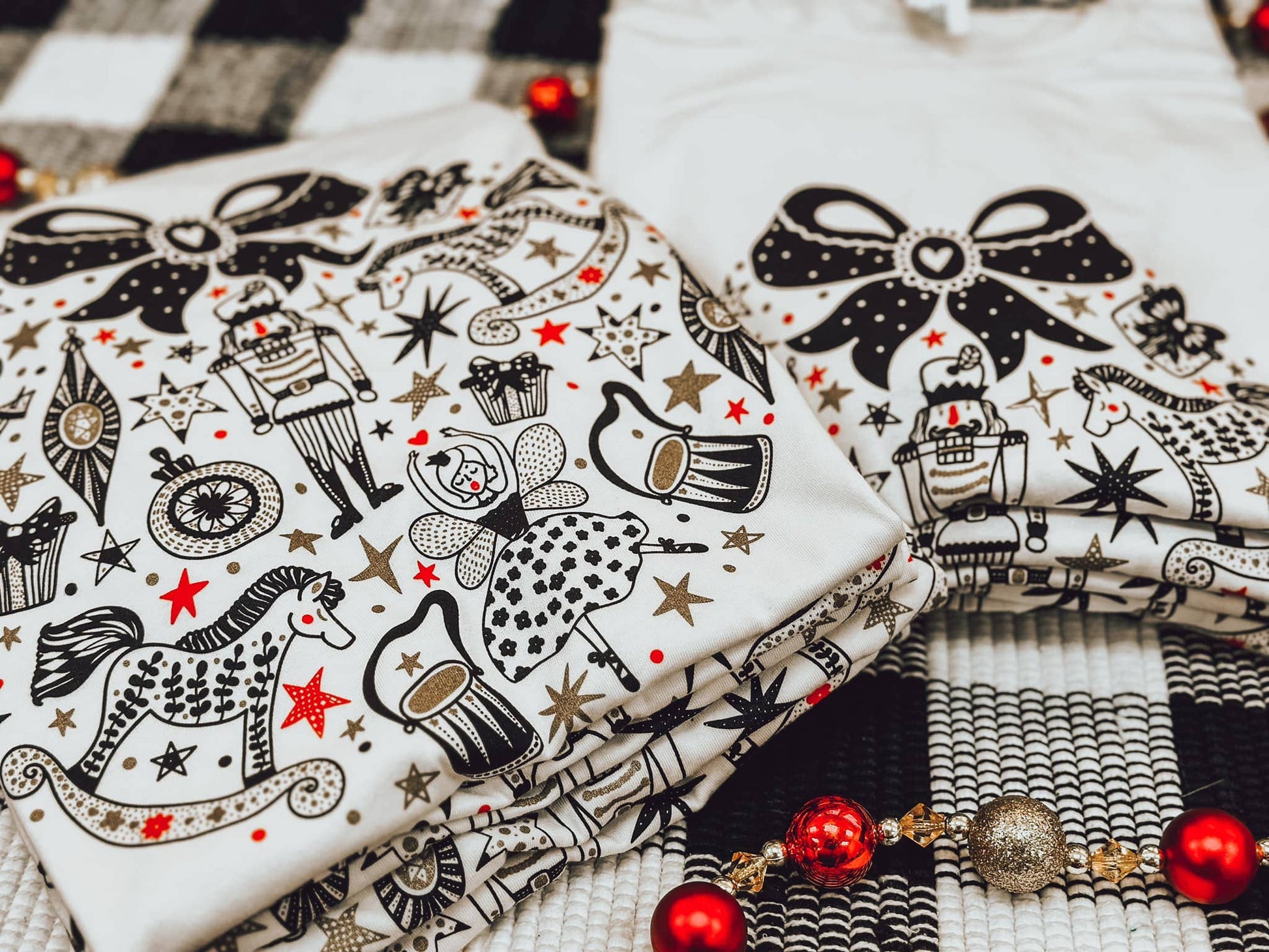 Get festive with the Nutcracker Christmas Vintage White Tee! This short sleeve tee features a nutcracker Christmas design in black, Christmas red, and shimmering gold ink. Bring some extra sparkle to your holiday wardrobe with this playful and unique tee.