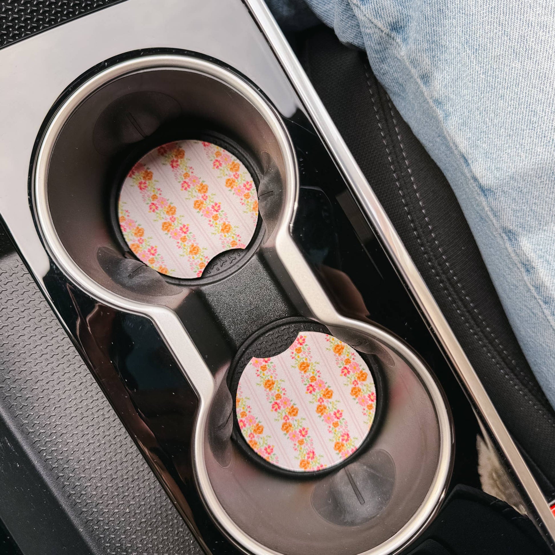 Keep your car clean and dry with our On the Road Car Coaster Set! This set of two matching coasters absorbs moisture to protect your car’s interior from spills and condensation. They’re easy to remove for cleaning and fit most standard cup holders. Packaged in a clear sleeve with a hang tab, they’re a practical and stylish accessory for any car.