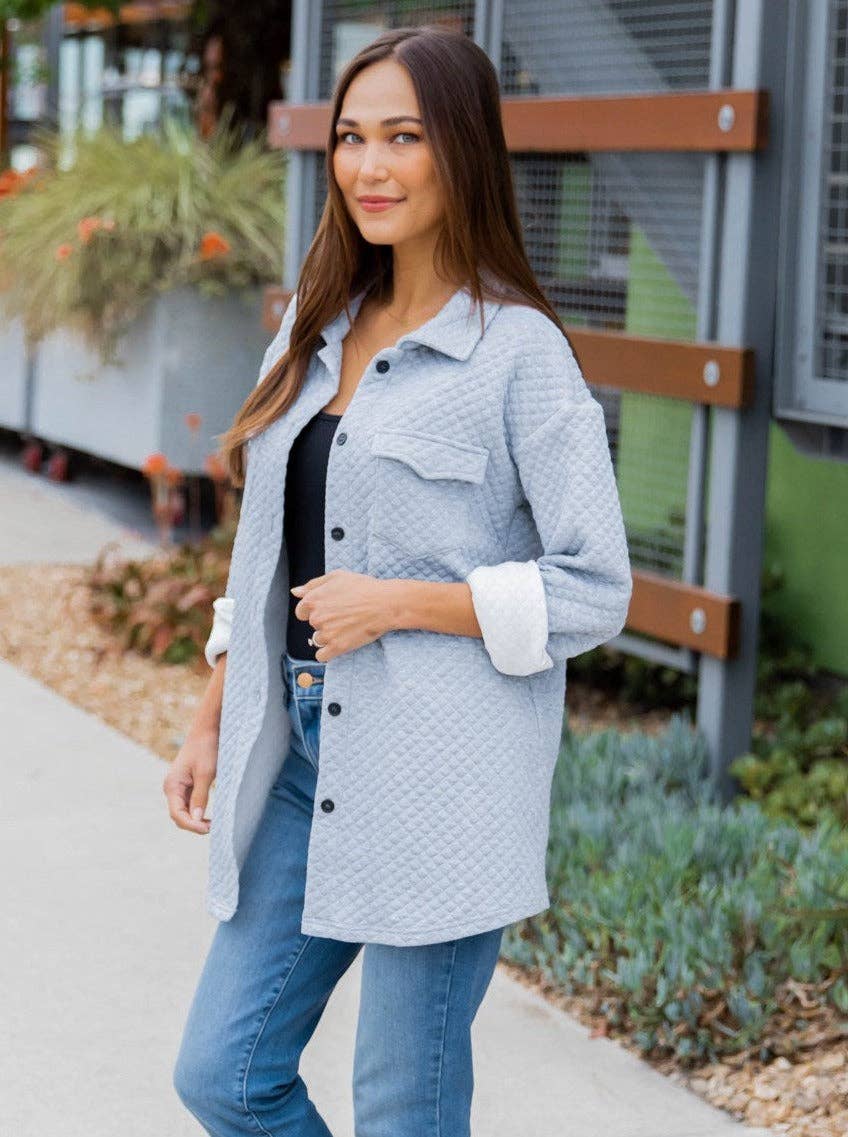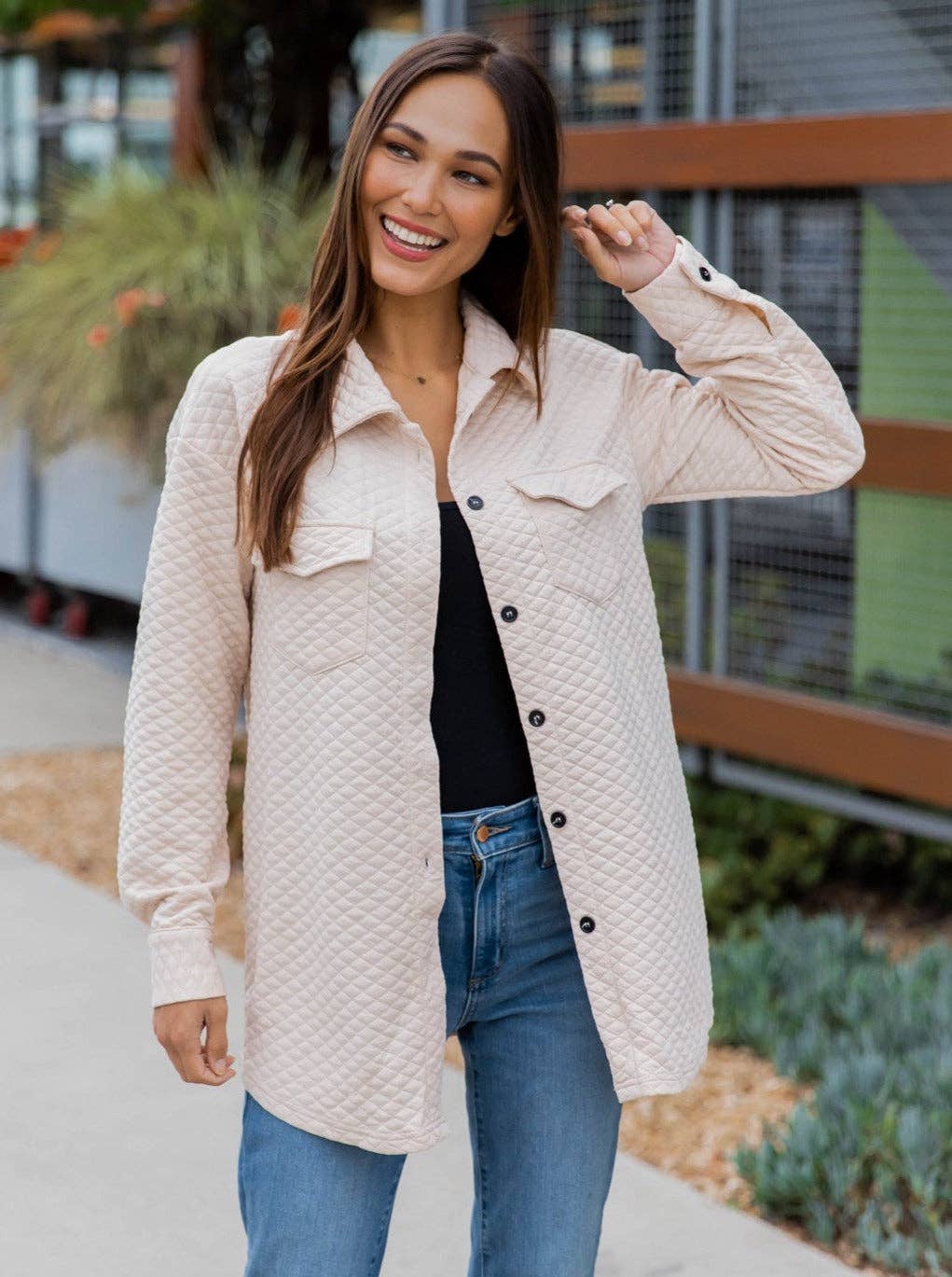 This quilted shacket is the perfect mix of fashion and comfort! Featuring soft, quilted fabric and a button-down design, you'll be sure to turn heads. Plus, the pocket detail adds just the right touch of style. Crafted with ultimate comfort in mind. Ready to elevate your look?
