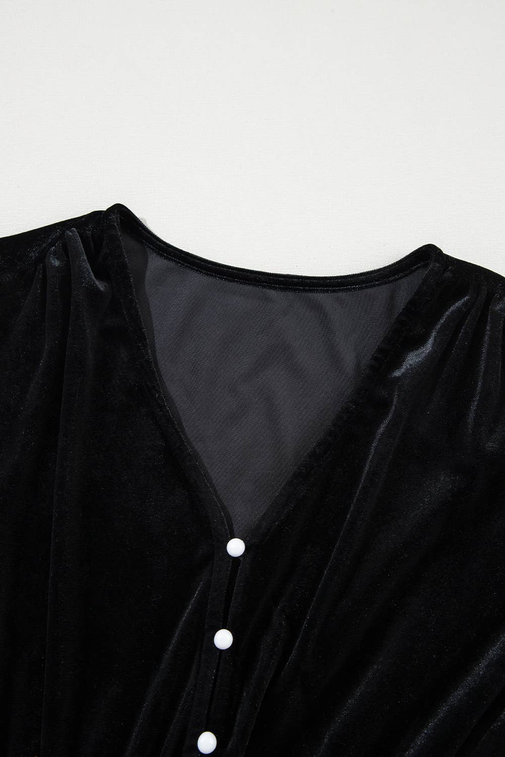 Elegant V-neckline with button detailing.