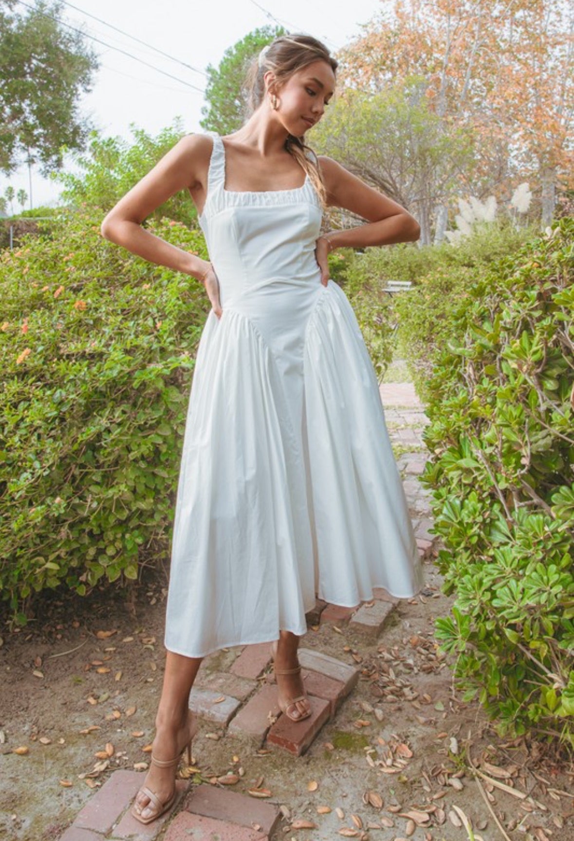 White Vintage Classic Square Neckline Dress
